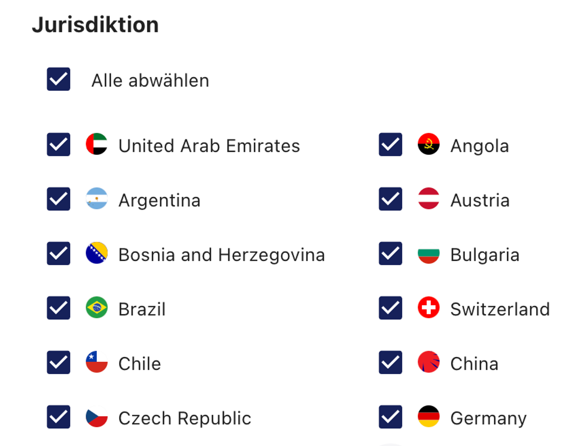 - 🕸️ Verbesserungen des Organigramms: Du kannst jetzt im Organigramm noch leichter filtern und dir so mit wenigen Klicks, die für dich relevanten Jurisdiktionen anzeigen lassen.