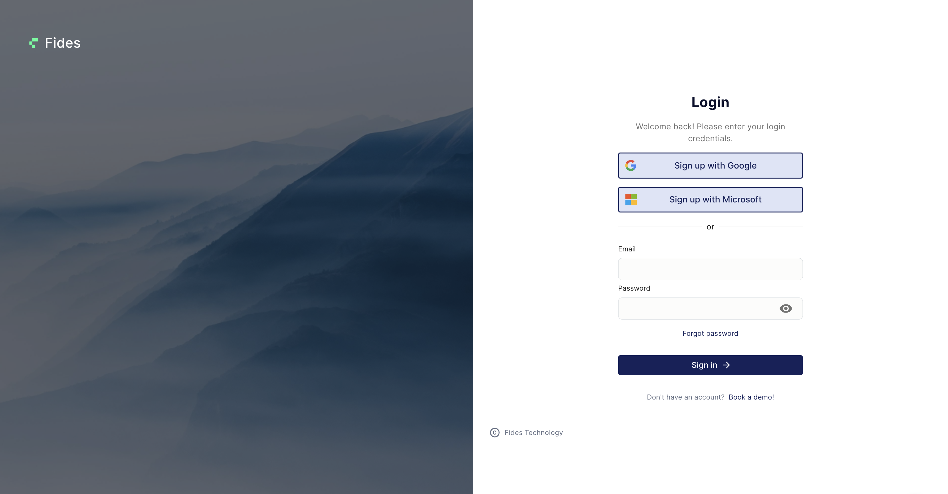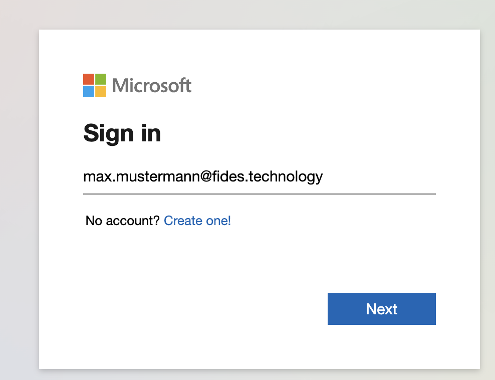 Customers for whom a Single Sign On (SSO) connection to Fides has been set up can log in to Fides via their customer-specific SSO connection. To do this, customers usually need a specific url which they can use to log in to Fides via their company account. The establishment of such a connection is usually related to internal security requirements of the customer's IT.