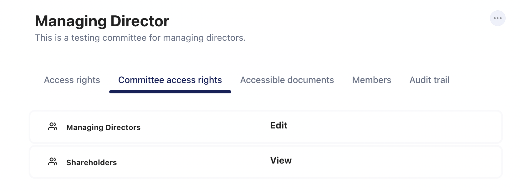 - ๐Committee Access Rights: You can now configure access rights for each committee. This allows you to specify for each user group, which committees they can view, edit, or have no access to at all.